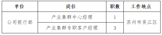 苏州农商银行现就部分岗位对外招聘。