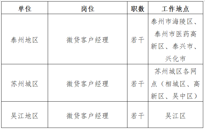 苏州农商银行现就部分岗位对外招聘。