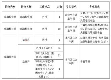 1.金融业务类:境内普通高等院校和境外高等院校大学本科及以上学历毕业生,并取得相应学位,专业符合对应岗位相关要求。